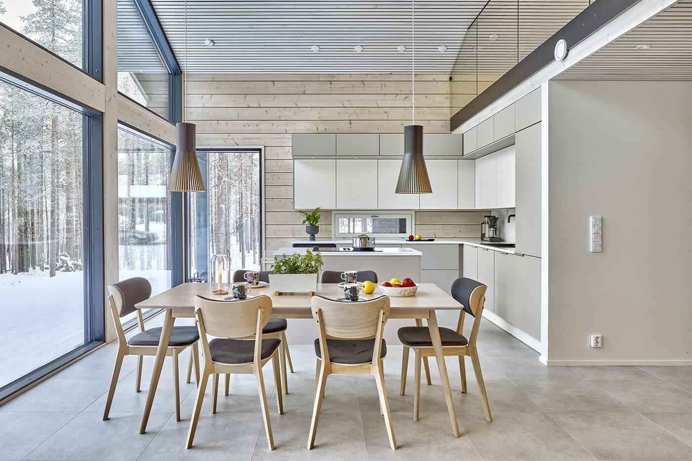 Valmistuneita Airisto taloja. Suunnittelun lähtökohtana on aina valmis Pluspuun malli, joka räätälöidään tarvittaessa asiakkaan toiveiden ja tontin erityispiirteiden mukaan.