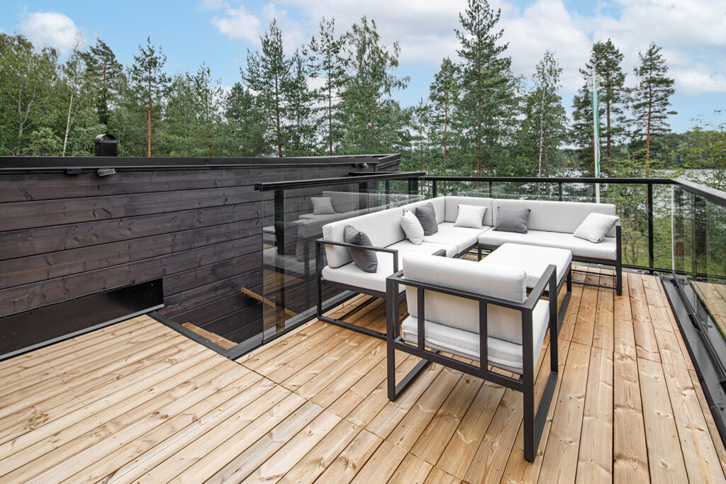 RoofDeck-kattoterassi on innovatiivinen ratkaisu, joka yhdistää modernin hirsihuvilan tai talon designin ja toimivuuden upealla kattoterassilla. Se luo ainutlaatuisen tilan, jossa voit nauttia esteettömistä maisemista ja auringosta, sekä viettää rentouttavaa vapaa-aikaa perheen ja ystävien kanssa.